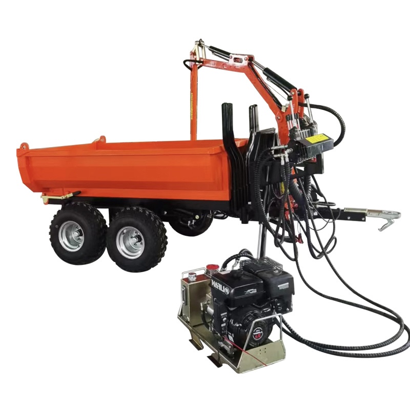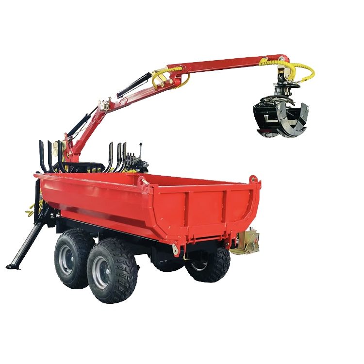 Trailer with the tub, it can transport and tip sand, soil, chippings and other loose materials. Remove the tub, it is a wonderful forestry trailer to allow loading and unloading of timber. This forestry tipping trailer is designed to be connected to ATV/UTV(min 500cc) vehicle or towed by a smaller tractor, particularly suited for use by self-employed farmers or owner of woodlot. Must not provide any customizations between towing vehicle and the forestry2ton ATV forestry trailer with 4.2m crane